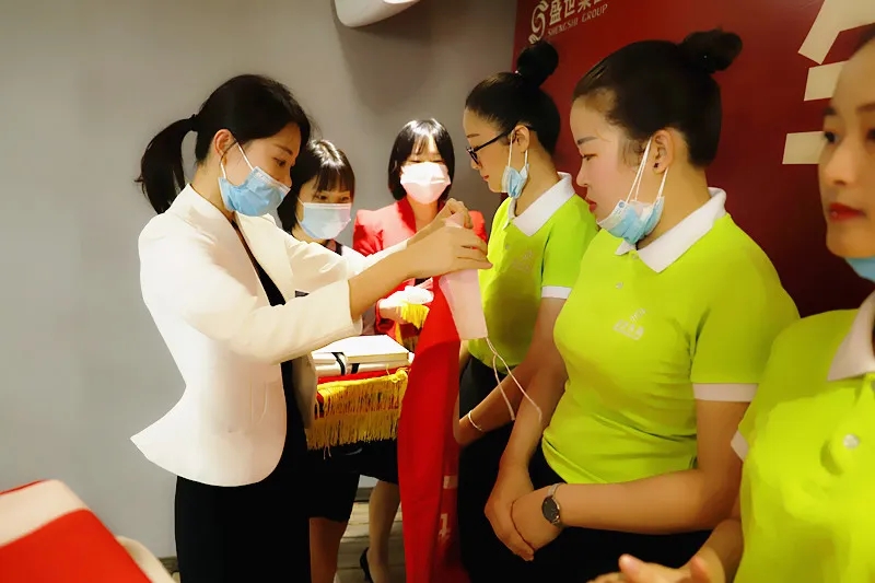 儀式上,盛世集團(tuán)何總、吳董為新家人授予入職戰(zhàn)袍、戰(zhàn)徽、戰(zhàn)旗,F(xiàn)場吳董致辭歡迎,給予新成員強(qiáng)大的力量。