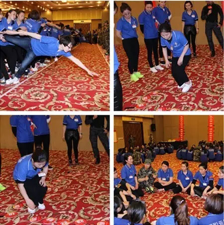 手搭手,肩并肩,為公司領(lǐng)導(dǎo)人和高管用繩索和身體撐起了一個(gè)走過的平臺(tái)。